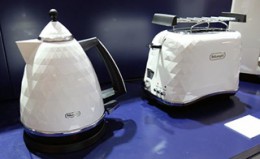 今回の新製品ではありませんが、日本未発売の「ブリリアンテ・シリーズ」です。コーヒーメーカー・電気ケトル・ポップアップトースターをラインナップします。表面の三角模様が織りなす美しさが魅力です。ブラックとホワイトの2色展開です。